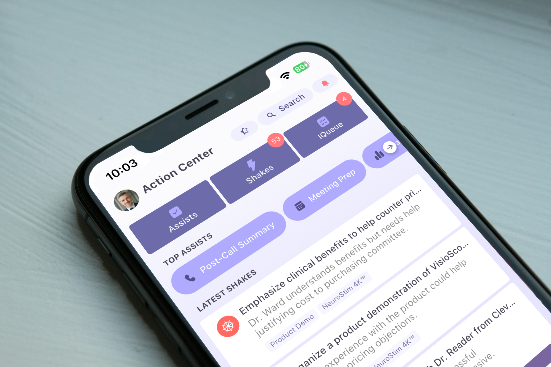 ShakeIQ takes your existing tools and data, and delivers instant briefs, AI-powered answers, automated notes, and drafted follow-ups - all through a mobile app reps actually love to use.